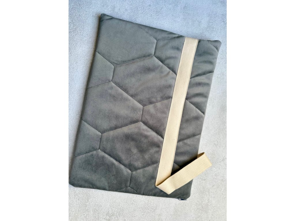 pouzdro je ušité ze sametového proševu a bavlněného popruhu. je vyztužené vatelínem. podšívka je z nepromokavého polyesteru a chrání tak notebook před případnou vlhkostí.